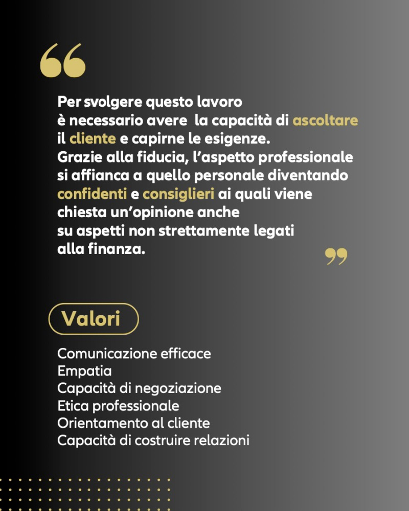 Disponibilità e riservatezza sono il mio modo di operare, la base per costruire una relazione solida.